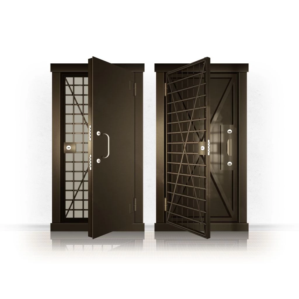 Металлические двери КХО и КХН представляют собой входные блоки, обладающие высоким уровнем взломостойкости и состоят из трех основных элементов: усиленного каркаса, сплошного металлического полотна и решетчатой двери. Дверной блок изготавливается из стального уголка 100*100 мм. Места крепления блока к стене цементируются и закрываются стальными наличниками шириной 40 мм. Крепеж заходит вглубь стены на 80 мм. В конструкции внешней створки монтируются ребра жесткости, для обшивки используется сталь толщиной не менее 3 мм. Внутренняя решетка изготавливается из прутка диаметром 16 мм. Размер ячеек решетки должен составлять не более 15 на 15 см. В точках пересечения прутья надежно приваривают друг к другу. В КХО и КХН необходимо поддерживать определенную температуру и влажность. Для этого внутреннее пространство глухой двери заполняется теплоизоляционным материалом, а по периметру двери приклеивается уплотнитель. Такие двери оборудуются замками с повышенным уровнем взломостойкости. Специализированные двери КХО и КХН в Евпатории могут быть оснащены сигнализацией, в конструкции могут быть проушины для навесного замка и элементами для опечатывания. Если идет речь о двери в комнату хранения оружия, в створке оборудуется окно для выдачи оружия и спец. средств, которое накрывается стальной дверцей.